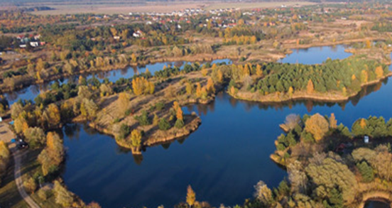 Grupa pięciu zbiorników, dawnych żwirowni, popularne miejsce spacerów i rekreacji.