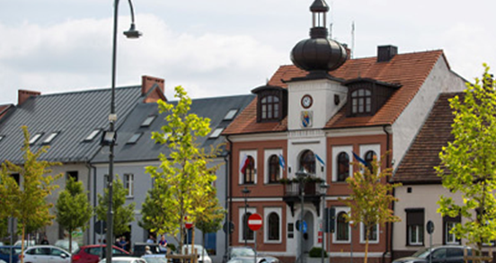 Rynek i historyczna zabudowa, w tym ratusz oraz kościół św. Jakuba.