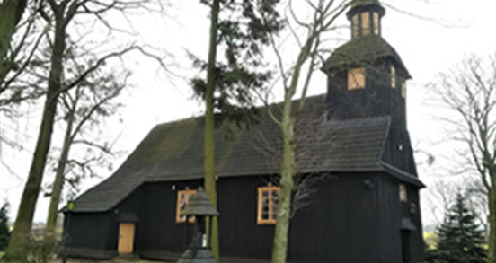 Drewniany kościół (datowany w źródłach na XVII/XVIII w.). To tutaj 11 września 1780 roku odbył się ślub Józefa Wybickiego z Esterą. Wnętrze słynie z polichromii.