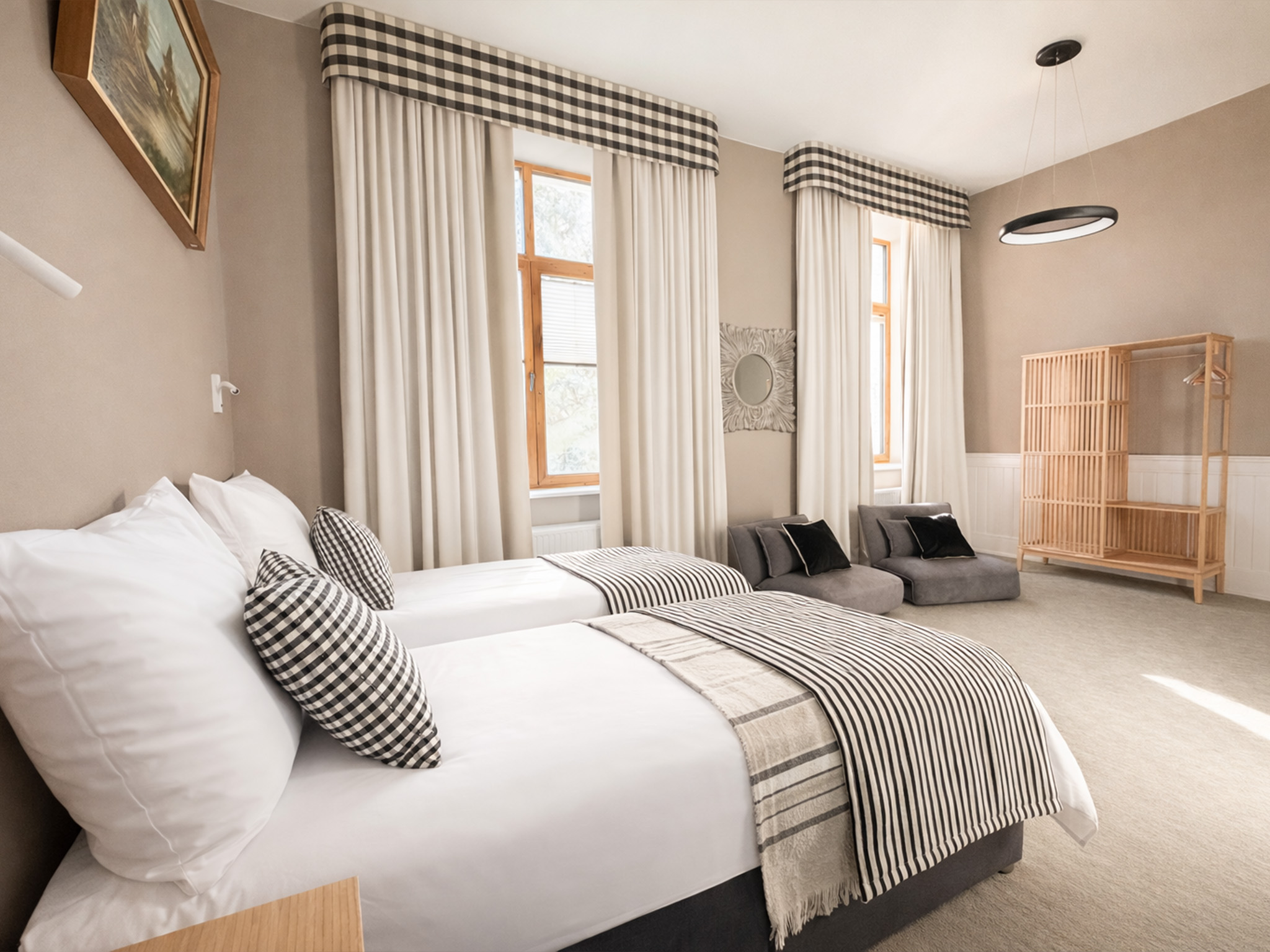 Każdy pokój ma swój charakter, swoją atmosferę i własną historię – tak, aby Goście mogli poczuć, że trafili do miejsca prawdziwego, a nie anonimowego.
